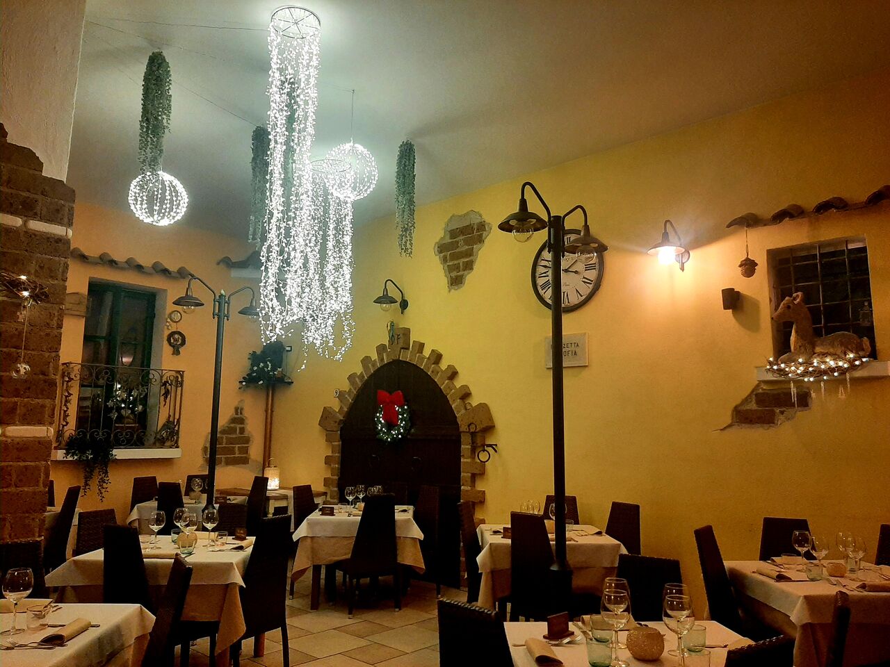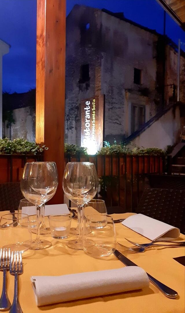 E, se chiudete gli occhi, trasportati dalla magia, potrete immaginare di cenare in una vera piazzetta, tra lampioni, portoni e fontane; tutto questo è Piazzetta Santa Sofia.